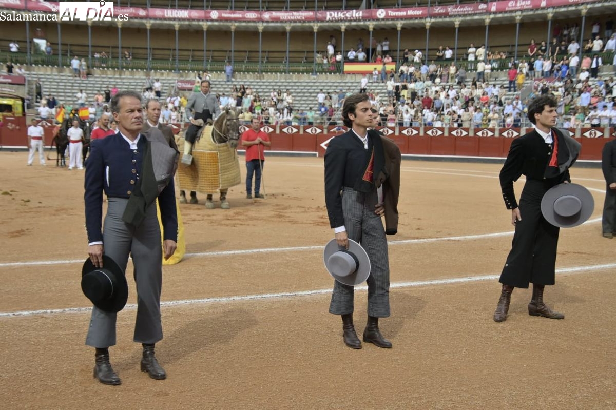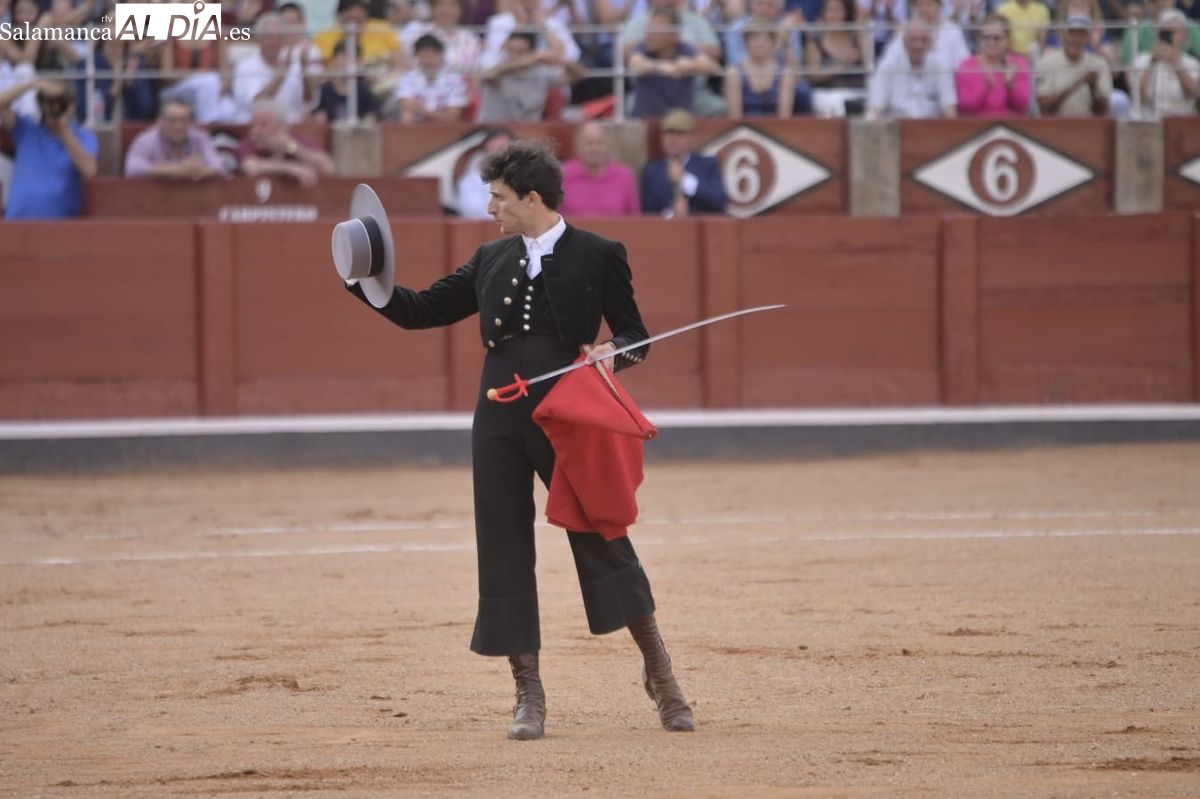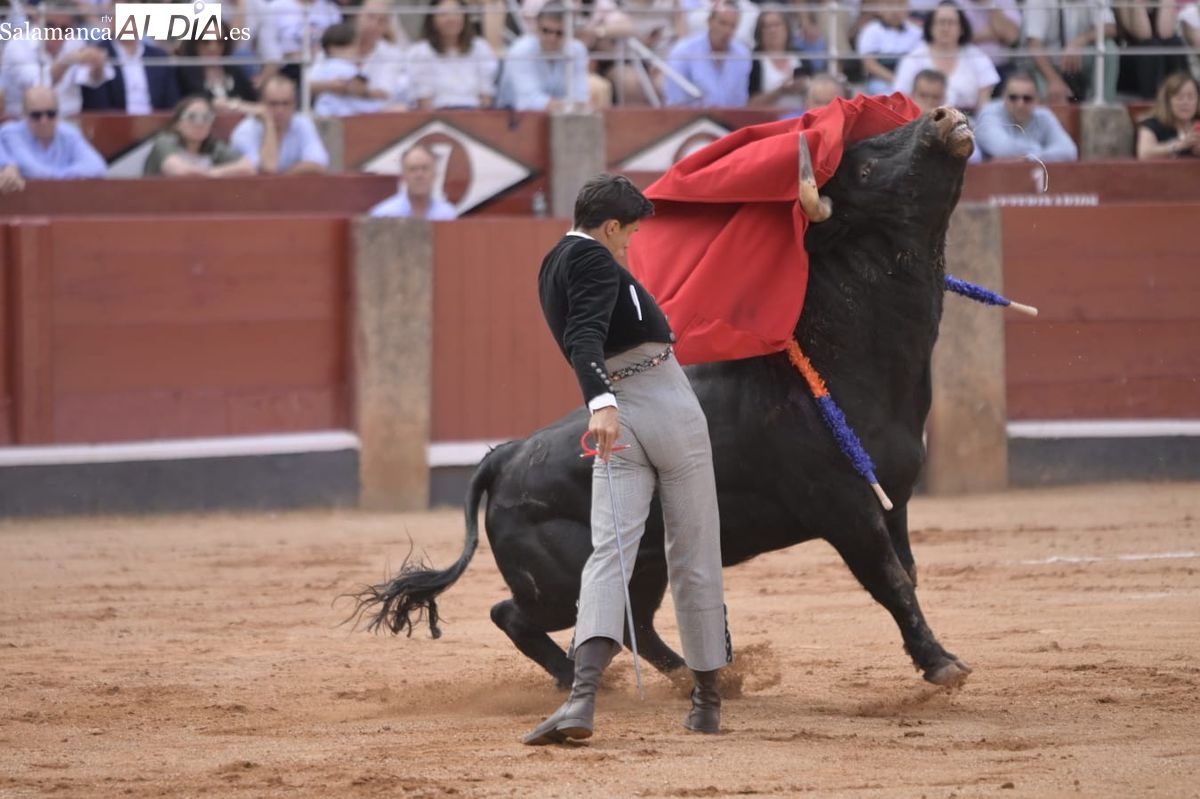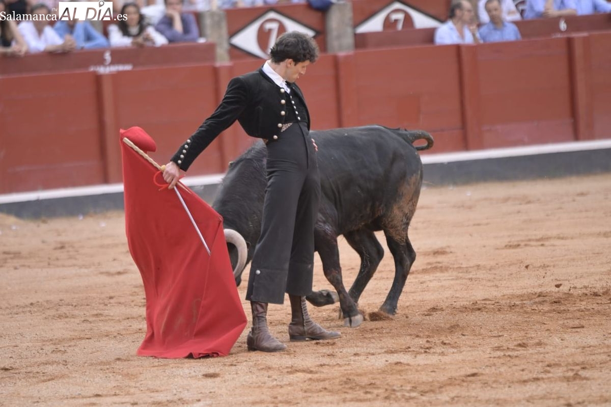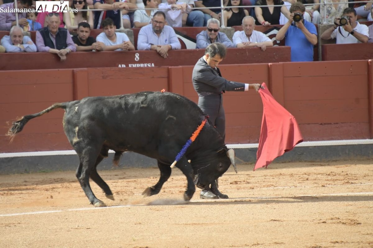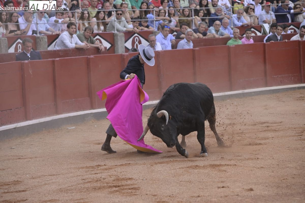 La actuación de más ecode la tarde fue la de Manuel Diosleguarde, que cortó las dos orejas al quinto de la tarde tras una faena de absoluta entrega rubricada con un espadazo soberbio volcándose en el morrillo, saliendo prendido de forma dramática y dejando atrás los fantasmas que habitaban en su cabeza después de la terrible cornada que sufrió en Cuéllar hace casi tres años. Después de aquel fatídico percance se le habían escapado varios triunfos a Diosleguarde por la vía de la espada. No se lo podía dejar marchar en Salamanca y ejecutó la suerte con una verdad absoluta.