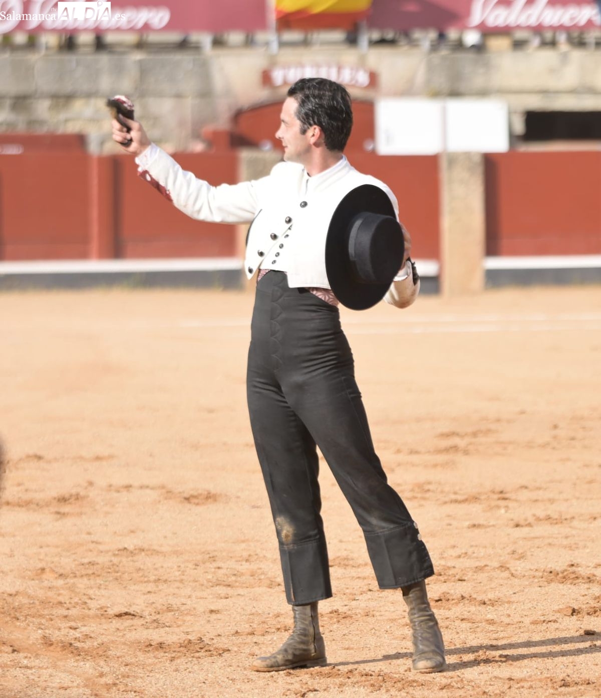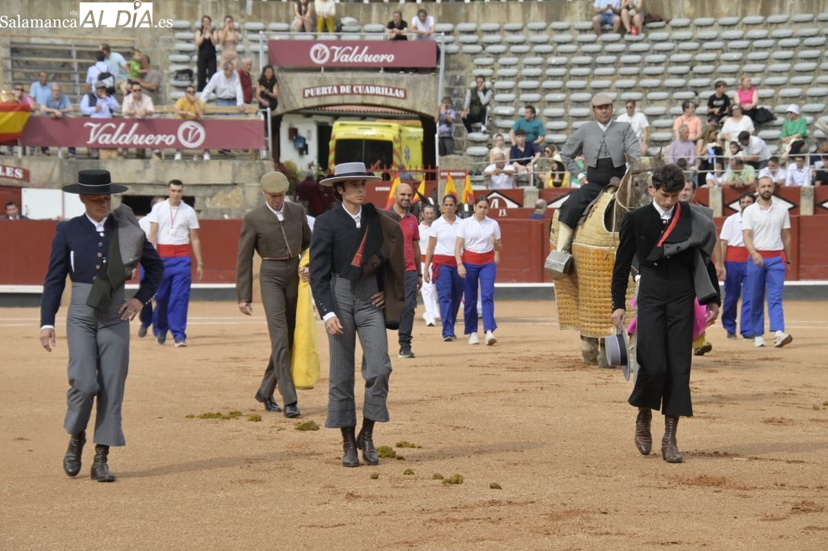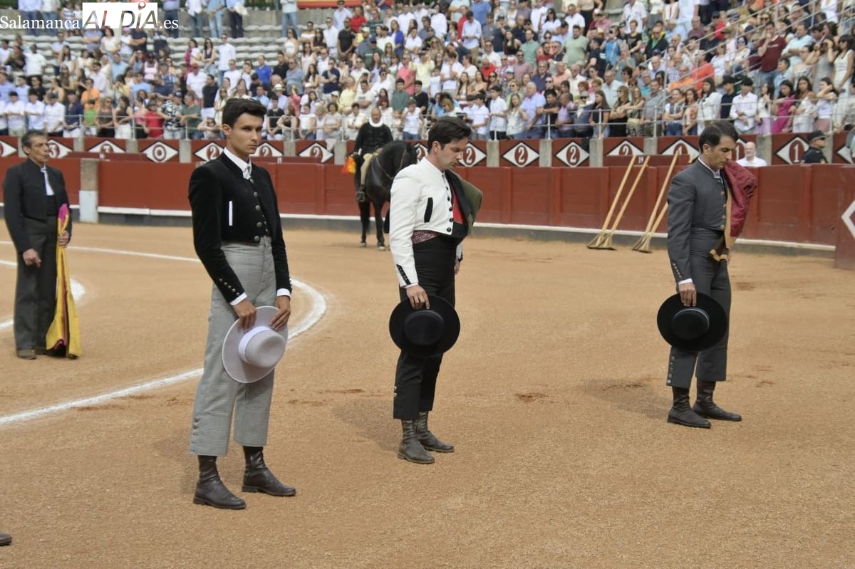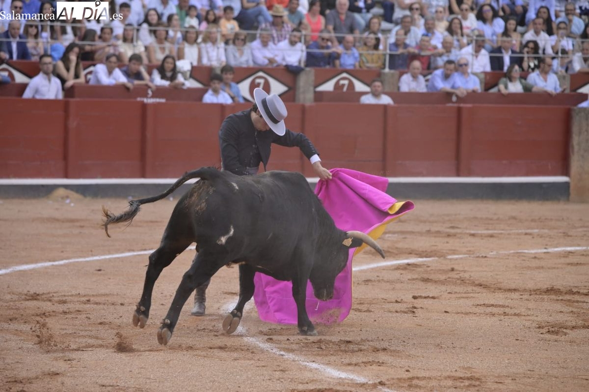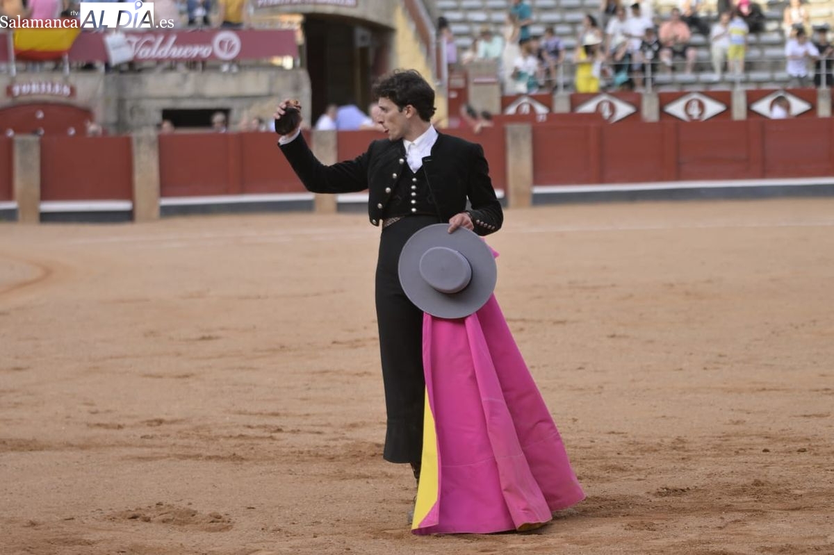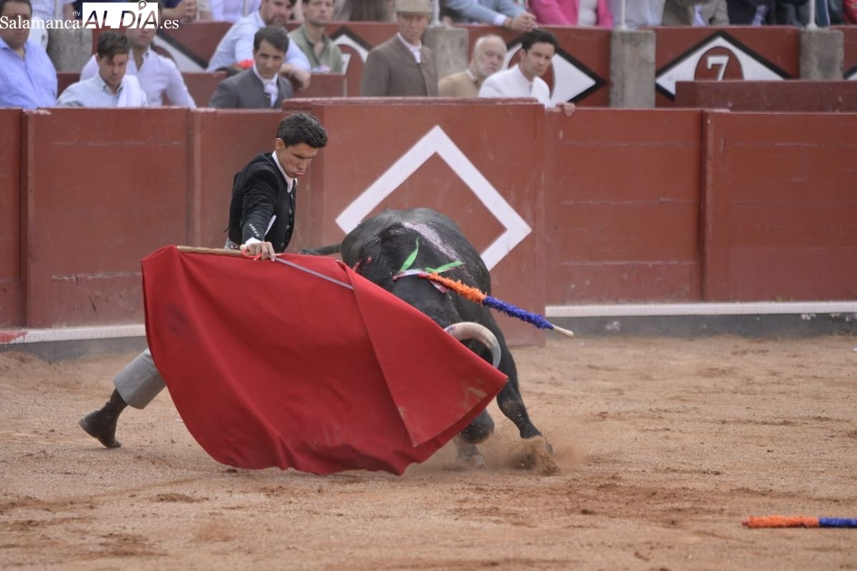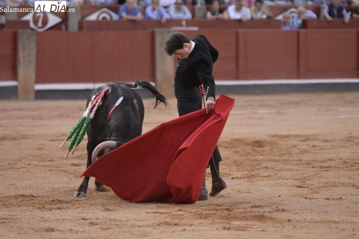 La actuación de más ecode la tarde fue la de Manuel Diosleguarde, que cortó las dos orejas al quinto de la tarde tras una faena de absoluta entrega rubricada con un espadazo soberbio volcándose en el morrillo, saliendo prendido de forma dramática y dejando atrás los fantasmas que habitaban en su cabeza después de la terrible cornada que sufrió en Cuéllar hace casi tres años. Después de aquel fatídico percance se le habían escapado varios triunfos a Diosleguarde por la vía de la espada. No se lo podía dejar marchar en Salamanca y ejecutó la suerte con una verdad absoluta.
