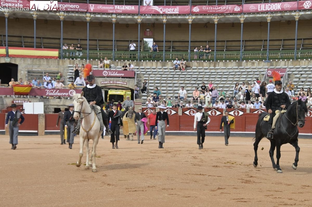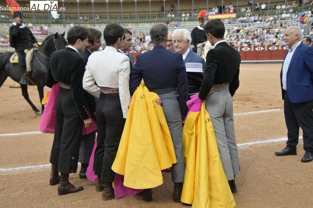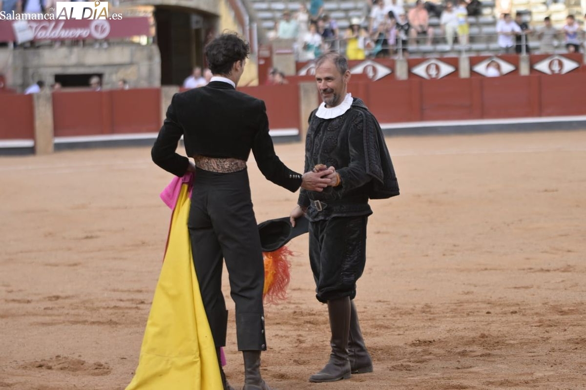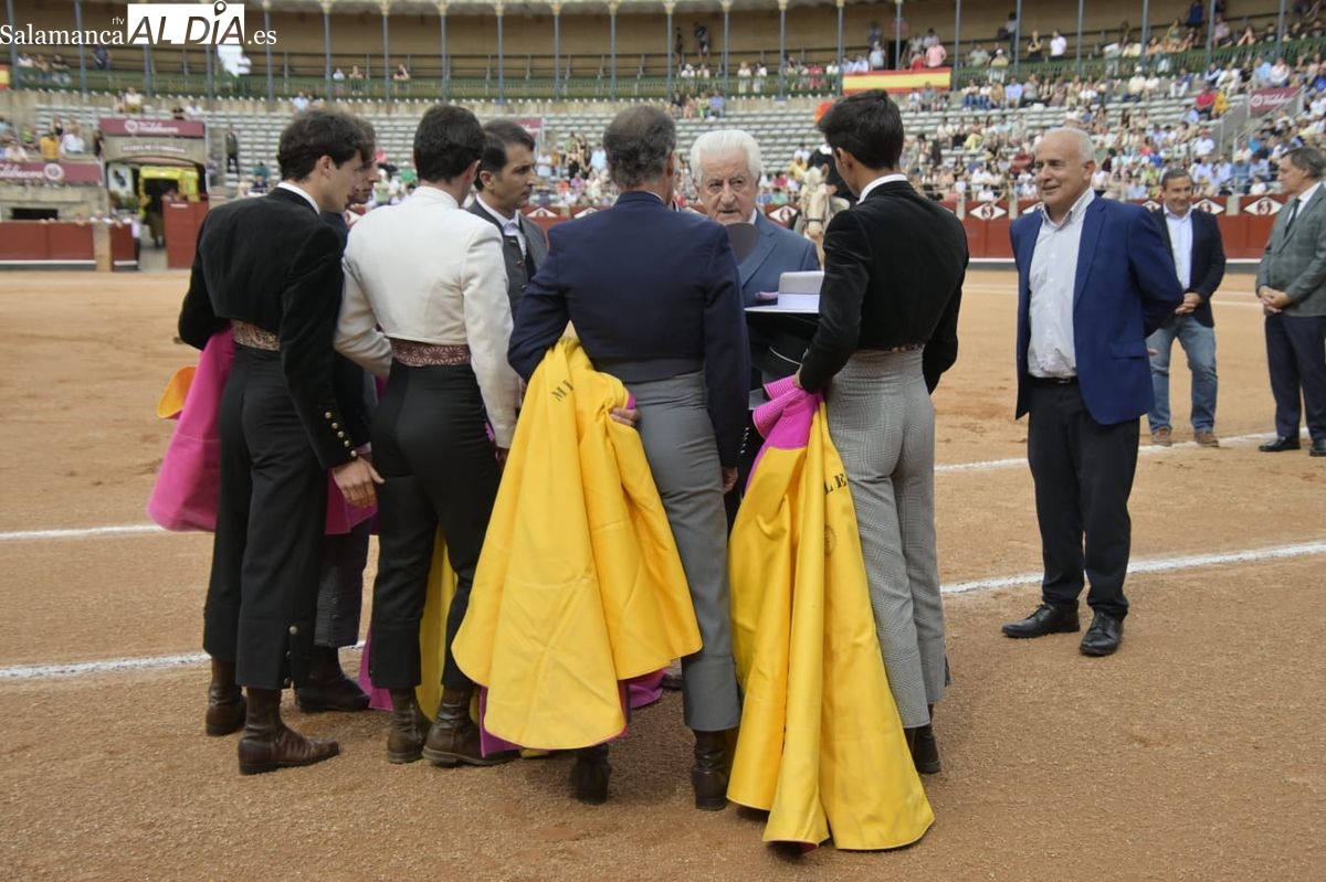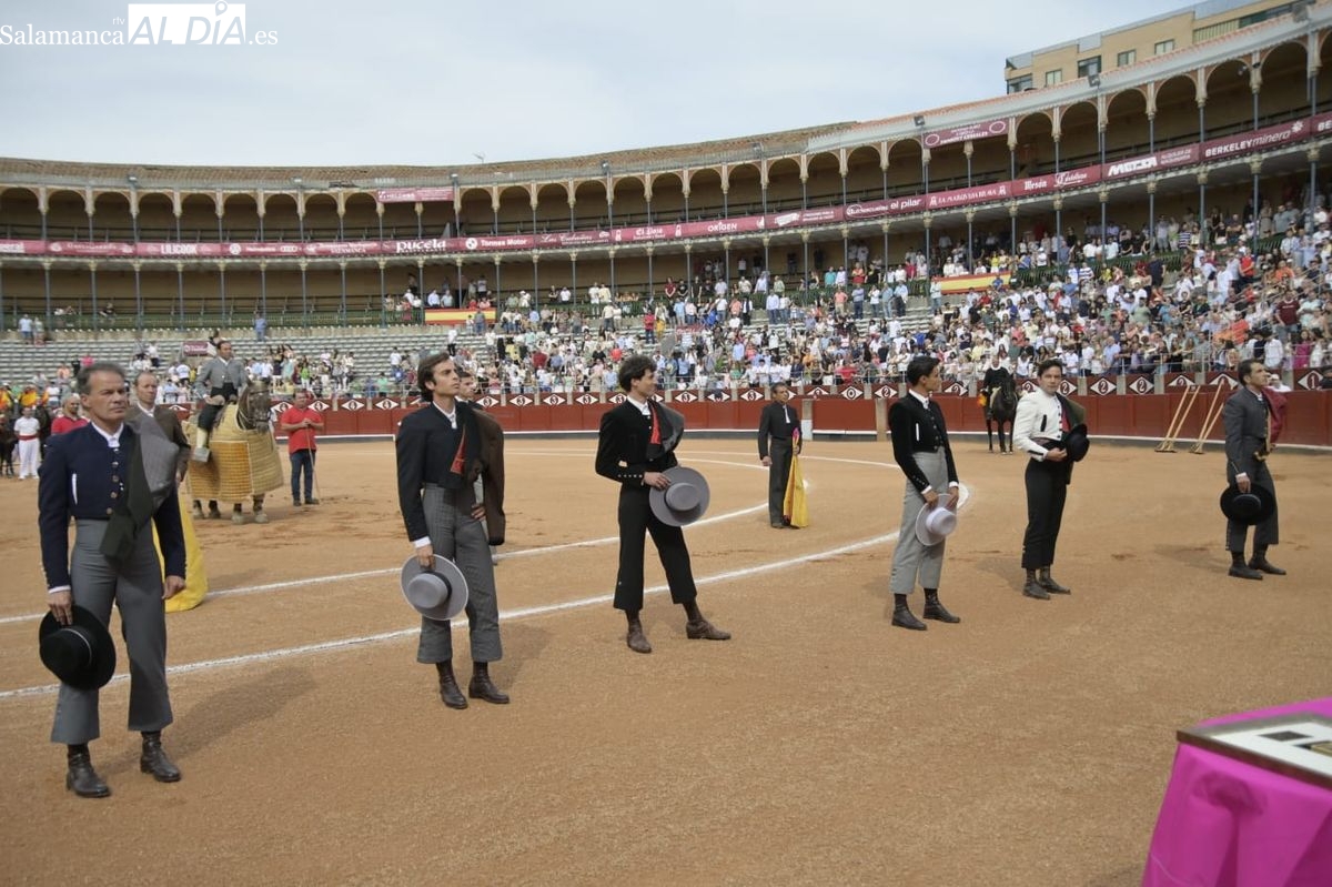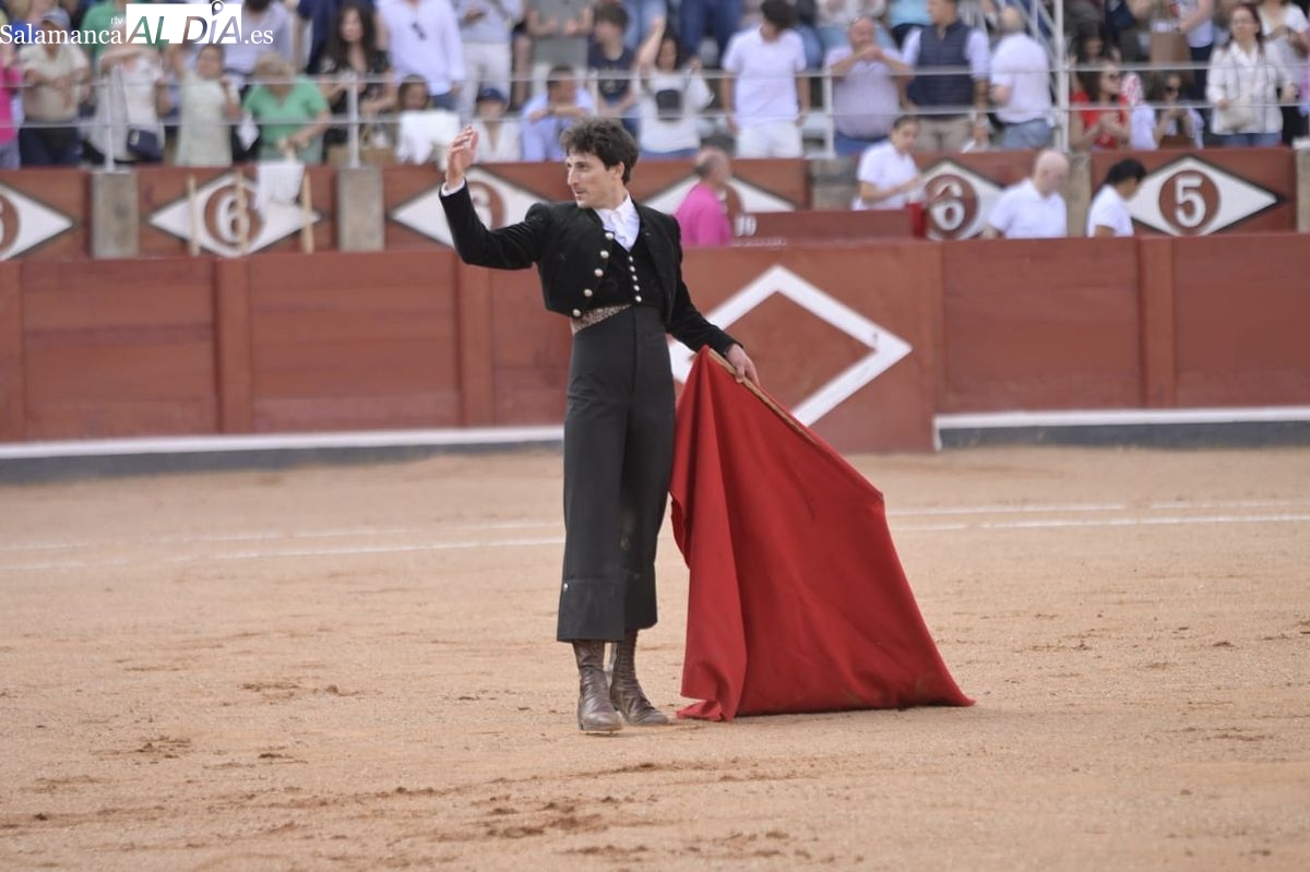 La actuación de más ecode la tarde fue la de Manuel Diosleguarde, que cortó las dos orejas al quinto de la tarde tras una faena de absoluta entrega rubricada con un espadazo soberbio volcándose en el morrillo, saliendo prendido de forma dramática y dejando atrás los fantasmas que habitaban en su cabeza después de la terrible cornada que sufrió en Cuéllar hace casi tres años. Después de aquel fatídico percance se le habían escapado varios triunfos a Diosleguarde por la vía de la espada. No se lo podía dejar marchar en Salamanca y ejecutó la suerte con una verdad absoluta.