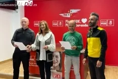 Carmen Ávila, candidata a la alcaldía de Peñaranda con el Partido Socialista, acompañada por los integrantes de la candidatura Pedro Peréz, Javier Díaz García y José Carlos Campano han presentado este miércoles las medidas que el PSOE incluye en su programa electoral en materia de deportes, propuestas todas ellas con las que buscarán, tal y como afirman, “reforzar la actividad deportiva actual y ampliarla con nuevas escuelas y proyectos”.