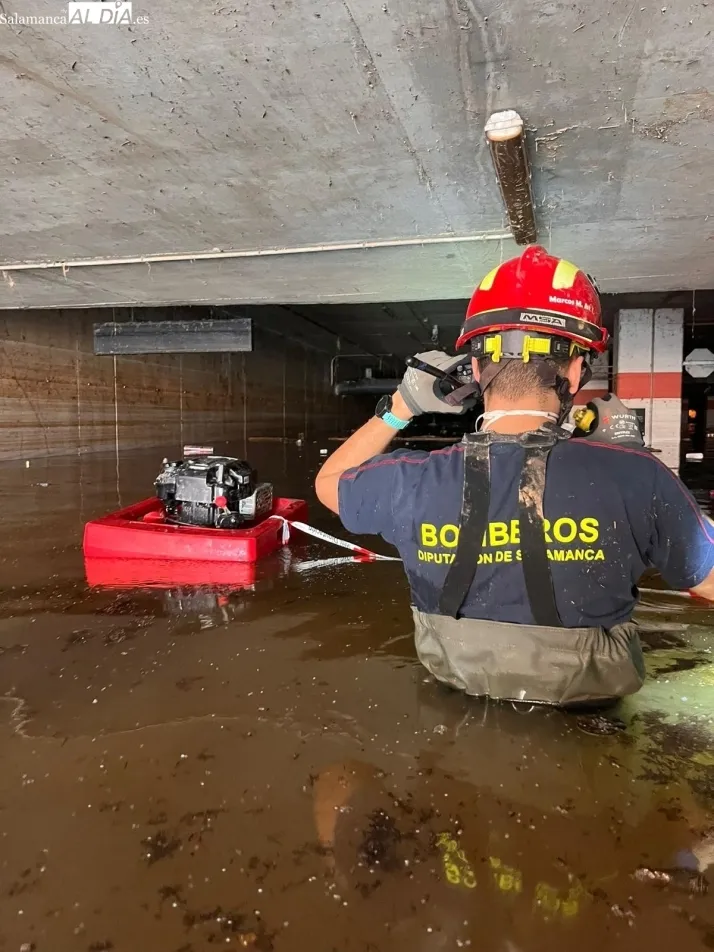 En un esfuerzo heroico los bomberos de la Diputación de Salamanca que se desplazaron este sábado a las zonas afectadas por la DANA en Valencia, han estado trabajando incansablemente en el Centro Comercial Bonaire, donde el parking se ha inundado, convirtiéndose en uno de los principales focos de catástrofe en Valencia. Junto a miembros de la UME y más bomberos de otras zonas, los salmantinos achican agua para intentar vaciar un parking con una superficie de 60.000 metros cuadrados.