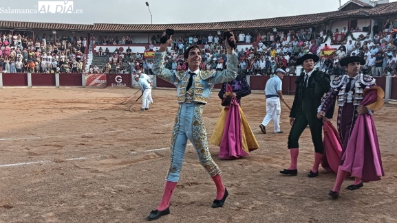 El novillero salmantino dio una extraordinaria dimensión, cortando cuatro orejas y firmando un faenón al sexto de la tarde, de Casasola, premiado con la vuelta al ruedo. Compartió salida en hombros con el local Cristian González.