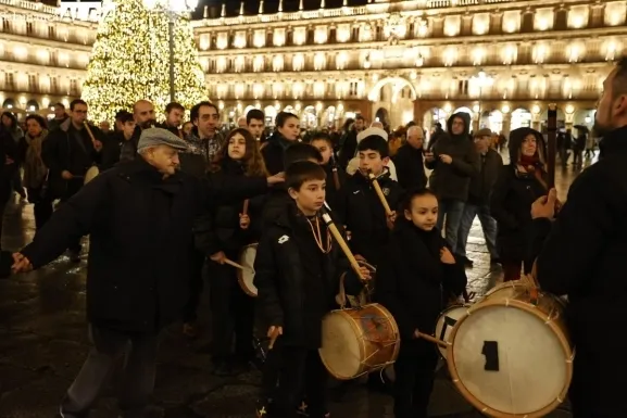 Profesores y más de una veintena de alumnos de cursos y formaciones de gaita y tamboril de la Escuela Municipal de Música y Danza de Salamanca han recreado este jueves 'El Pujo' en un pasacalles navideño, que ha arrancado en la Plaza Mayor.