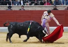 Apretó el acelerador Castaño mediada la faena e hizo sonar los acordes de su pasodoble, que se estrenó esta tarde, tras una serie notable con la mano derecha en la que ligó con profundidad y limpieza. El final de labor tuvo una torería mayúscula con un pase de la firma que fue un cartel de toros. Todavía hubo tiempo para cinco naturales soberbios, de uno en uno, muy de frente y vaciando la embestida del de Alcurrucén. Enterró el acero al primer intento Castaño para cobrar una estocada caída fulminante. El salmantino paseó la primera oreja de la tarde y de su temporada.